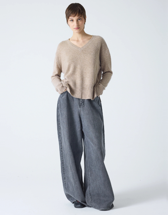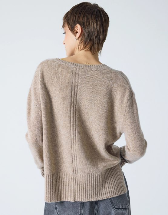 Luxuriously soft and effortlessly chic, the ABSOLUT CASHMERE Livia knit is a 100% 4-ply, 7GG cashmere jumper featuring an oversized V-neck silhouette with ribbed finishes and subtle ribbed back detailing. In a refined Chestnut–Light Beige, it’s a timeless layer that pairs with everything.