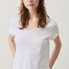 The short sleeve Sonoma t-shirt from AMERICAN VINTAGE in classic white, has a flattering V neckline and is finished with a raw hem.