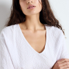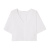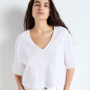 The AMERICAN VINTAGE Tuffaz Top in Coconut White is a warm-weather staple with effortless charm. Crafted from a lightweight, textured cotton; it features a relaxed V-neckline, sort sleeves with dropped shoulders, and a boxy, slightly cropped silhouette for that perfectly undone look. It is breathable, soft, and easy to wear all season long.