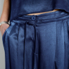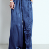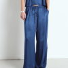 The AMERICAN VINTAGE Voogy trousers are crafted from silky viscose in deep night blue. These relaxed, wide-leg trousers offer a fluid, effortless drape, and feature front pleats, side pockets, and a drawstring tie-waist. Combining comfort with a tailored look, they look great styled with a simple tee or dressed up for an evening out.