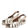 Oozing with vintage charm; The ANONYMOUS COPENHAGEN Sophie 20 sandals are crafted from crackled metallic goat leather in champagne. They feature a comfortable 20mm heel, providing a subtle lift perfect for everyday wear. The natural leather lining and insole offer a soft and breathable feel, enhancing comfort throughout the day. With a Thunit outsole that ensures durability and a secure grip, these sandals are crafted with care in Portugal, making them a versatile addition to your footwear collection.