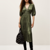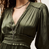 Effortlessly elegant, the Cleli Dress by BA&SH is crafted from 100% recycled polyester with a subtle satin sheen in versatile khaki green. The flattering V-neckline and short puff sleeves with elastic cuffs add a soft, romantic touch, while the triple drawstring waistbands allow you to adjust the fit for a perfectly feminine silhouette. The perfect go-to-piece for elevated daywear, or an evening out.