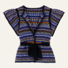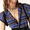 The Flace vest from BA&SH comes in a beautiful cotton and wool blend jacquard. Designed in a vibrant blue mix, this cross over top is cut for a straight fit and features short ruffle sleeves and a tie belt. The Flace vest looks amazing styled with the matching Flame skirt.