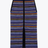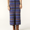 The BA&SH Flame skirt comes in a beautiful cotton and wool blend jacquard. Designed in a vibrant blue mix, this straight cut midi skirt features a front slit and elasticated waist. The Flame skirt looks amazing styled with the matching Flace top, or paired with a simple tee and boots.