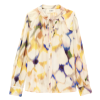 The BA&SH Foka top comes in soft ecru shade with a dreamy abstract watercolor print throughout. Crafted from viscose crepe, it is lightweight and breathable, perfect for warmer days. This relaxed-fit piece features long sleeves with button cuffs, and is finished with a Tunisian neckline that can be tied, or left open. Style yours with wide leg denim, or pair with the Fipan trousers from the same collection for a classic co-ord.