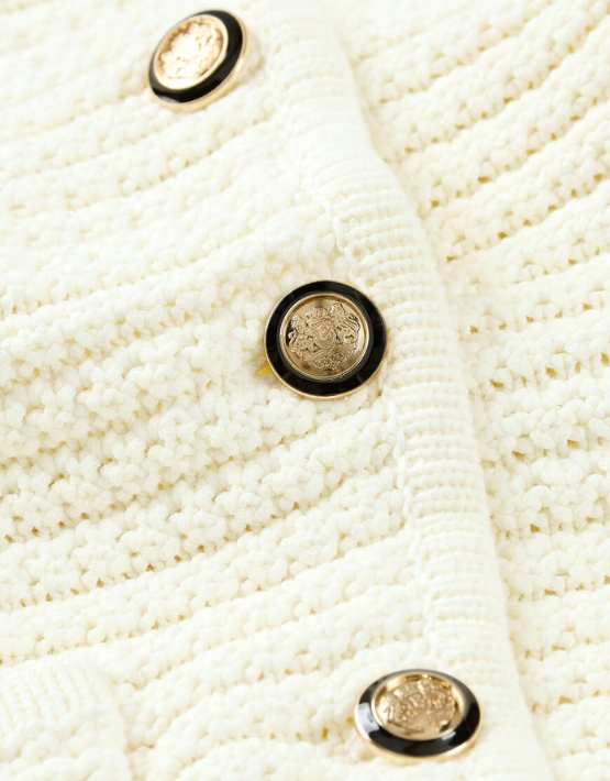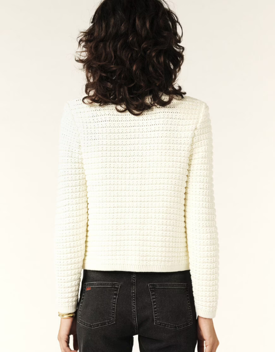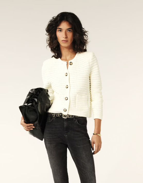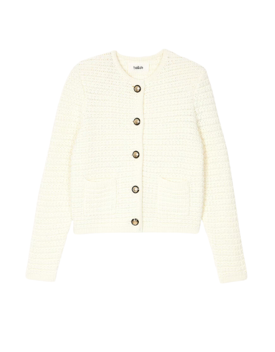 The BA&SH Gaspard cardigan in ecru is the perfect alternative to a jacket. Made from a cotton blend, this structured knit is designed for a straight fit and features small shoulder pads and statement gold buttons.
