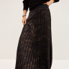 Howie Skirt. This maxi-length pleated skirt makes a bold statement with its striking snake print in rich brown tones, bringing movement, texture, and a touch of wild to your wardrobe.