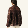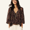 Effortlessly relaxed with a touch of bohemian charm, the Kamala Top by BA&SH is your new go-to for easy-dressing. It is crafted from 100% lightweight viscose in a rich chocolate brown with a delicate speckled print. Soft and fluid, with a relaxed fit, it features dropped shoulders, long blouson sleeves. and a V-neckline with delicate tie detailing for versatility.