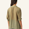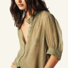 Light, airy, and effortlessly refined—the Mimi Top by BA&SH blends timeless French chic with a hint of bohemian flair. Cut for a relaxed fit, this semi-sheer shirt features a high, round neckline, delicate button front, and short puff sleeves for a soft, feminine shape. Metallic gold flecks scattered throughout add just the right amount of shimmer—easy to wear by day, yet elevated enough for an evening out.