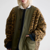 The BELLEROSE Hampton Jacket in black sand brings bold contrast to a cosy essential. This oversized, reversible jacket features a sleek black quilted nylon side for a clean, structured look, and a statement leopard-print teddy fleece reverse with khaki yoke details for added edge. A removable teddy collar offers styling versatility, while oversized patch pockets and snap-button closures keep it functional and easy to wear.