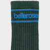 Everyday staples with a sporty twist; The Vrel crew-length ankle socks from BELLEROSE feature ribbed ankles for a secure fit, finished with contrasting blue stripes and the BELLEROSE logo on soft bottle green cotton blend.