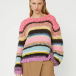 The Gabi cardigan from DAWN X DARE is a hand-knitted statement piece crafted from a soft, multicoloured mohair blend. Featuring bold horizontal stripes and a classic round neckline, it brings playful colour and texture to any look. With its slightly cropped length, boxy silhouette, and open front, the Gabi offers a relaxed yet eye-catching layer perfect for effortless styling across seasons.