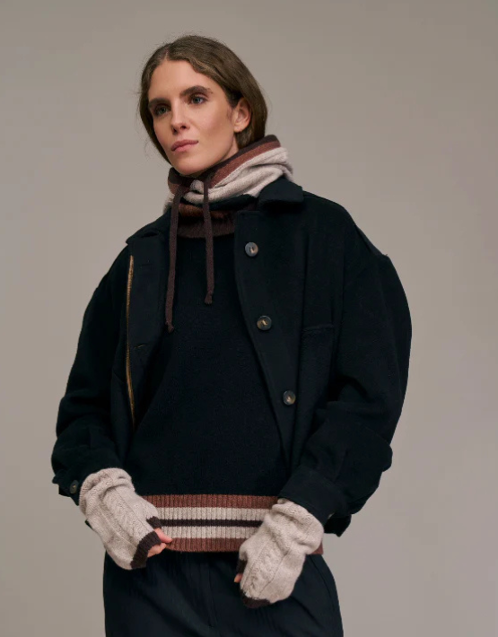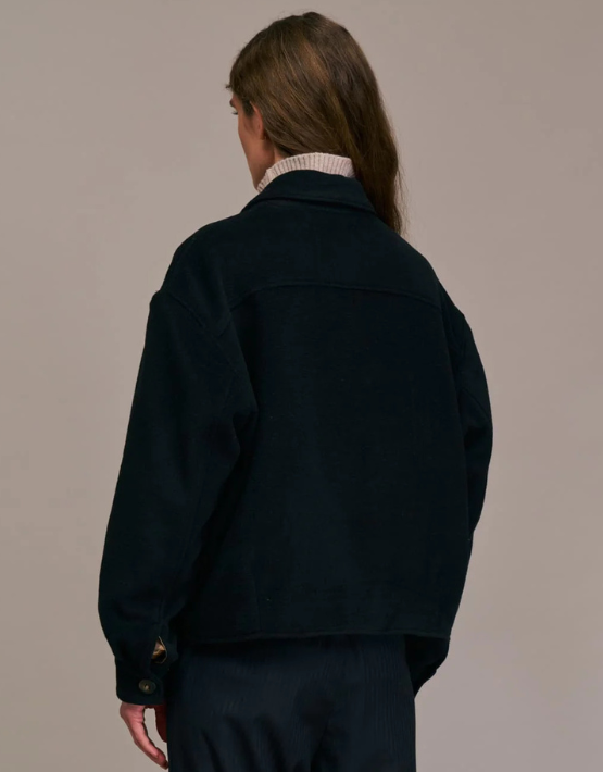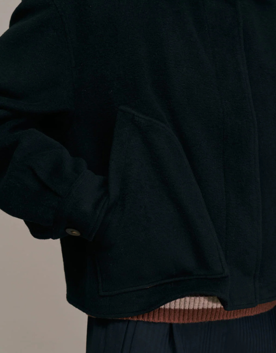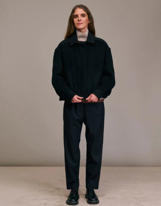 Crafted from a soft-touch wool blend, the DIEGA Bambino jacket delivers effortless structure with a modern feel. Its short, boxy silhouette pairs a pointed collar with a classic button-front, while large patch pockets add relaxed utility. Fully lined for comfort and easy layering; a timeless piece with understated edge.