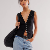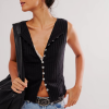 The Tilly vest in black from FREE PEOPLE/ is crafted in a soft cotton, ribbed knit with added stretch. This slim-fitting vest hugs in all the right places for a flattering silhouette and features a round neckline and button-front closures.