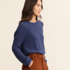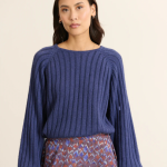 A wardrobe staple with a twist; the GARANCE Kiwi jumper features a round to the front and a feminine V-back with knot detail on the reverse. Crafted in a soft ribbed knit, this piece features a slightly relaxed fit, dropped shoulders, and long sleeves for all-day comfort. Its rich navy tone makes it endlessly easy to style—whether dressed down with denim or elevated with tailored pieces.