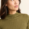 A slim, close-fitting sweater designed for effortless layering; the GARANCE Pistache knit is crafted in fine ribbed knit with a high collar and long sleeves. It features lurex threads in a khaki-gold hue that adds a hint of shimmer to everyday looks.