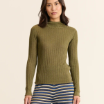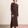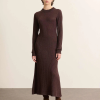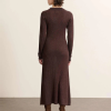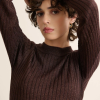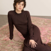 The Tipi Dress by GARANCE blends comfort and elegance in a finely ribbed knit with subtle lurex threads that catch the light in a rich, shimmering brown. Designed with a high collar and long sleeves, it contours the body through the waist before falling into a softly flowing skirt.
