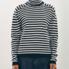 is made from soft cashmere. This relaxed fit knit comes in a narrow stripe design in black and fog grey, and is finished with saddle shoulders.