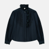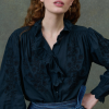 Delicately detailed and timelessly feminine, the Cora Shirt by LOUISE MISHA is a romantic wardrobe staple. Crafted from soft, breathable 100% cotton, this elegant black blouse features a ruffled collar and scalloped trim that trails down the button placket for a soft, vintage-inspired touch. Intricate tone-on-tone floral embroidery adorns the front panels and sleeves, adding texture and quiet beauty.