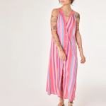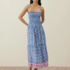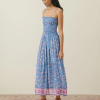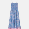 Perfect for warm summer days; the LOUISE MISHA Marcianne Dress crafted from lightweight organic cotton voile in a beautiful blue and pink floral block-print. Long and flowing, it features smocking across the chest for a flattering fit, with thin, adjustable straps for added comfort and flexibility.