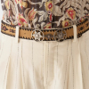 The Agustina Belt in Yerba Mate from MAISON HOTEL is made from 100% suede leather, and features a striking blend of black detailing against a warm camel base, all held together by two star-shaped buckles.