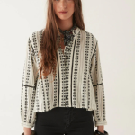 The Dion Top from MAISON HOTEL captures the spirit of artisanal design – Crafted from 100% cotton, this ecru blouse features rich red embroidery intricately stitched down the front and across the blouson sleeves, evoking timeless bohemian charm.