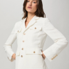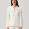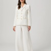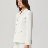 The Reign Blazer by PAIGE is tailored from a lightweight linen-blend suiting fabric in crisp white, offering a fresh take on classic tailoring. Designed with a straight-cut silhouette, it features a sharp notch collar, patch pockets, and soft gold novelty buttons for a touch of modern elegance. For a complete and polished look, pair it with the coordinating Greyson Trousers.