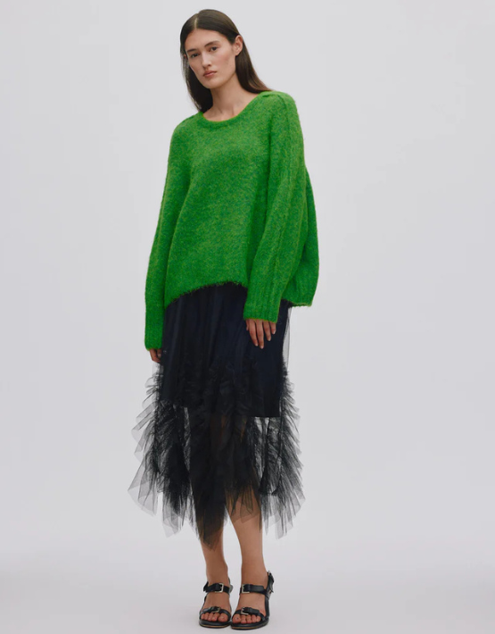 Wrap yourself in warmth and softness with the Beka Jumper from RABENS SALONER; your go-to knit for chilly days. Spun from a light yet cozy alpaca-wool blend, this oversized sweater features a relaxed, boxy silhouette with a round neckline, ribbed cuffs, and hem for a clean, timeless finish. Its understated design and rich Viper Green hue make it a versatile staple you’ll reach for season after season.