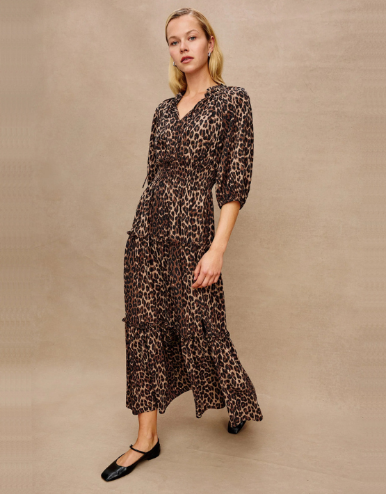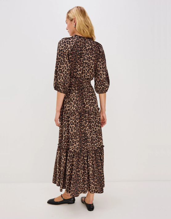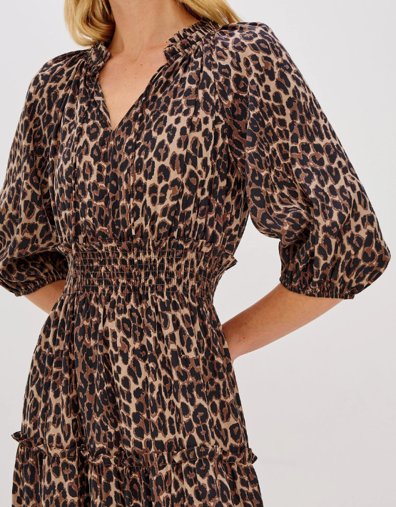Wild meets refined. The RAILS Caterine Dress pairs a classic leopard print with feminine detail; a smocked waist, puff sleeves, and a flowing tiered skirt. Lightweight and flattering, it’s your go-anywhere, do-anything piece of the season.
