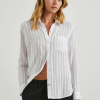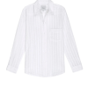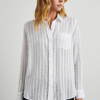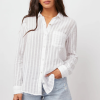 The RAILS Charli shirt in White Shadow Stripe is a luxe cotton, long sleeve, crisp white buttondown shirt featuring tonal burnout stripes. It is cut for a relaxed fit, and finished with a patch pocket on the chest.
