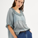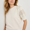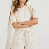 The RAILS Kimberly sweatshirt is crafted from a soft cotton terry in oat. It is cut for a slightly cropped fit and features a round neck, reibbed hem and playful crochet balloon sleeves. Style yours with high-waist denim, or pair with the matching Eddie shorts.