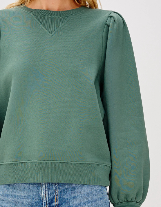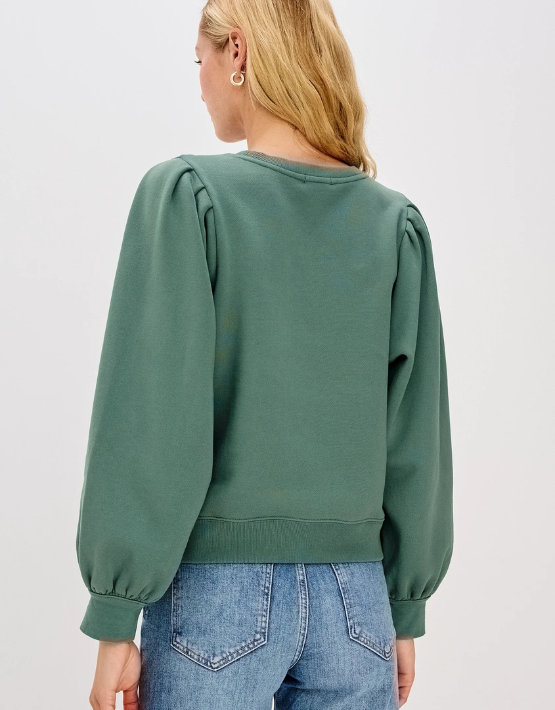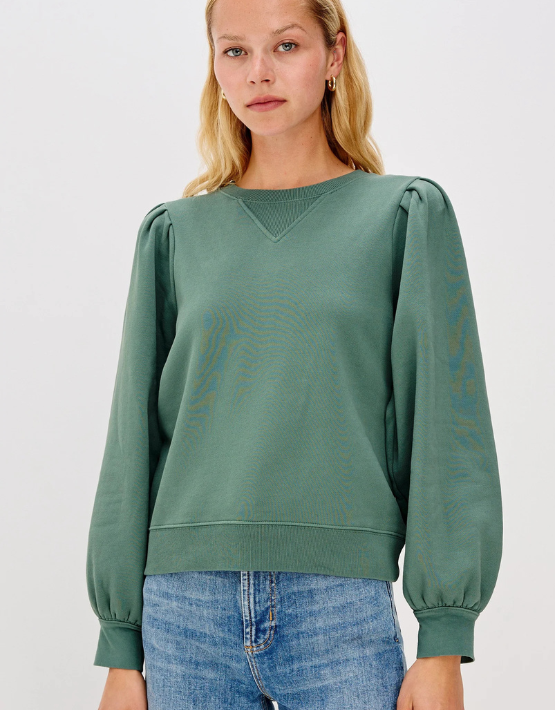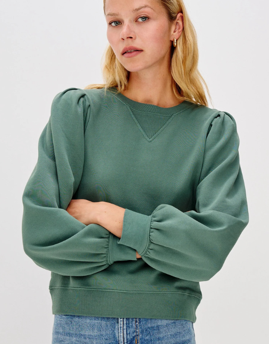 An elevated take on everyday comfort. The RAILS Tiffany Sweatshirt features a classic crew neckline and relaxed fit, accented by subtle puff sleeves with pleated shoulders for a feminine touch. Crafted from soft, 100% cotton in a serene Lake green hue, it’s the perfect balance of cosy and polished.