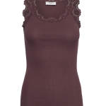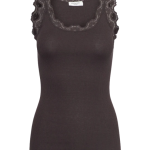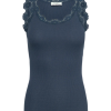 A wardrobe staple; The Babette U-neck vest from ROSEMUNDE in Insignia Blue is made from a soft, seamless ribbed silk jersey. It features lace trim along the rounded neckline and a curl-edge on the bottom. Style alone, or layer under everything from fine knits to oversized shirts.