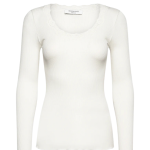 A wardrobe staple; The Babette U-neck long sleeve top from ROSEMUNDE in Forrest Night is made from a soft, seamless ribbed silk jersey. It features lace trim along the rounded neckline and a curl-edge on the bottom. Style alone, or layer under a cosy knit.