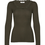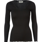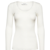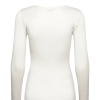 A wardrobe staple; The Babette U-neck long sleeve top from ROSEMUNDE in Ivory is made from a soft, seamless ribbed silk jersey. It features lace trim along the rounded neckline and a curl-edge on the bottom. Style alone, or layer under a cosy knit.
