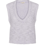 A wardrobe staple; The Bernadine V-neck vest from ROSEMUNDE in Peach fuzz is made from soft, organic cotton in a seamless ribbed jersey. It features lace trim along the V-neckline and a curl-edge on the bottom. Style alone, or layer under everything from fine knits to oversized shirts.