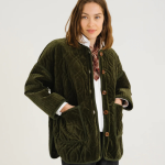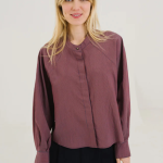 A modern twist on a classic silhouette; The SACRECOEUR Alice Forest Shirt is cropped and collarless, featuring a clean mandarin collar and concealed button front for a sleek, minimalist look. Crafted in a soft khaki green with subtle pale pink stripes, it’s finished with long raglan sleeves and buttoned cuffs for a relaxed yet polished feel.