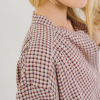 The Ella shirt from SACRECOEUR comes in a small beige and red check design. Made from a cotton and viscose blend, it is cut for a relaxed fit and features a mandarin collar, button front and gathered details across the shoulders.