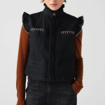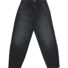 The Mia jeans from SEVENTY + MOCHI have a super-high rise, relaxed fit with a cocoon leg and western yoke detailing. Made with certified organic and recycled cotton, the come in a vintage black wash.