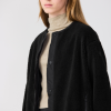 A smooth, Nylon-lined placket runs down the front, secured with sleek snap buttons for a minimal finish. The collarless round neckline keeps the silhouette modern, while elasticated cuffs help lock in warmth without sacrificing style. This piece also looks great layered under the TANTA Tempete Raincoat for when you need an extra weatherproof layer – combining warmth and protection in one streamlined look.