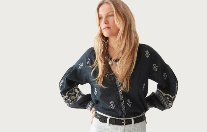 Their blouses and shirts are classically feminine and pair great with denim or worn undone as an alternative to a jacket.